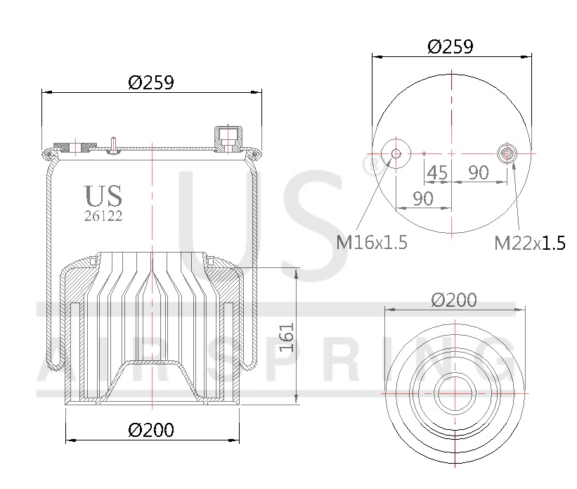 26173 COMPLETE AIR SPRING WITH PLASTIC PISTON