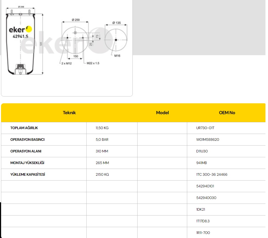 2009-259 | 2941 P AIR SPRING WITHOUT PISTON |
