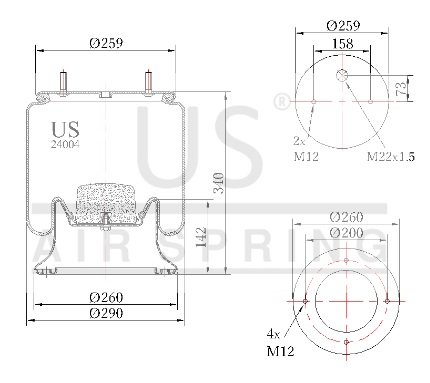 20810 K02 COMPLETE AIR SPRING 2 BOLTS