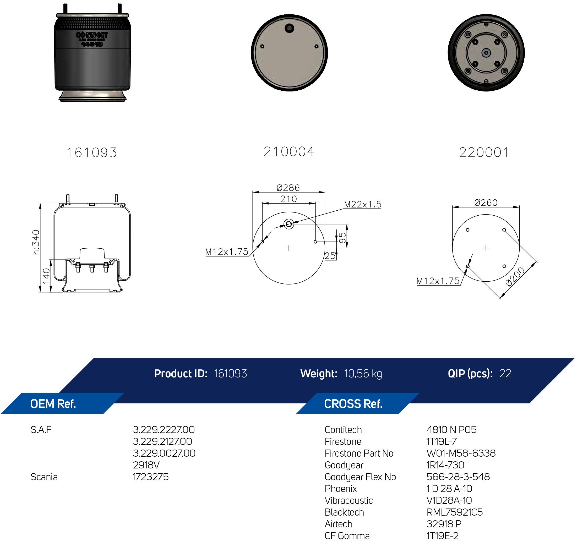 161093-CO | 14810-05 COMPLETE AIR SPRING TWO BOLTS |