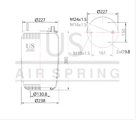 161290-CO | 1810 K16 COMPLETE AIR SPRING 2 BOLTS |