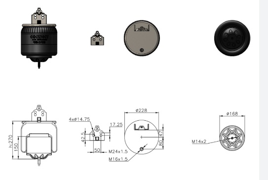 D1.6418.K | 6418 COMPLETE AIR SPRING WITH METAL PISTON |